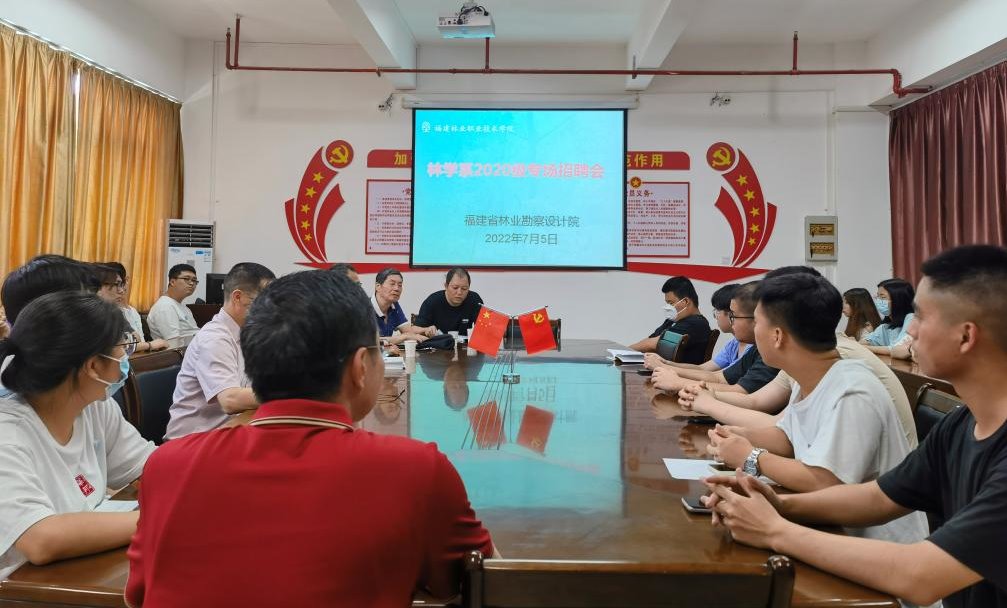 毕业生就业是高职院校的生存之本,为更好地拓宽2023届毕业生实习及就业渠道,缓解大学毕业生实习就业压力,2022年7月5日下午,李肇锋副院长邀请福建省林业勘察设计院在林学系会议室召开林业类毕业生专场招聘会,招聘会吸引了近50名林业专业的同学前来参加。