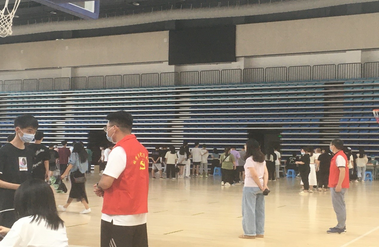 暑假期间,学生的行程轨迹复杂多变,为做好安全工作,林学系学工组在学生返校前已做好“一表一码一查”的收集工作,充分掌握学生的健康状况。学生返校后,林学系教师党员成立志愿服务小组,积极协助学院后勤医务部门完成师生全员核酸检测工作。林学系党总支徐洪书记、廖建国主任带头表率,带领教师党员做好秩序维护工作。每个班级的同学们有序排列,在志愿服务队的引领下有条不紊地完成核酸检测。