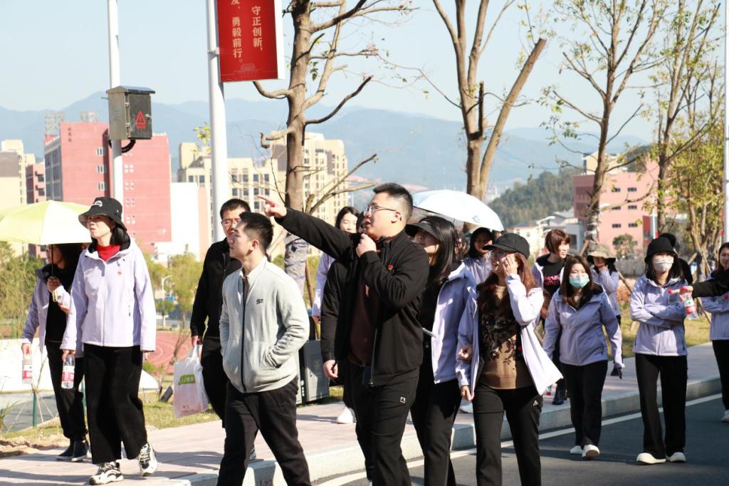 在林学系党总支副书记(主持工作)傅成杰、系主任廖建国的带领下,从校大门出发,途经江南校区侧门、艺术楼、交通楼、建工楼、江南体育馆、学生公寓8号楼、龙景阁、信工楼、人工湖、图书馆。一路上傅老师介绍了校园未来的规划和部署,大家脸上洋溢着喜悦与快乐,精神抖擞、兴致高昂、三五成群,沿着健步道阔步向前。最后,傅老师为大家讲解了林学楼七楼的森林生态科普教育基地,展示林学系办学特色。