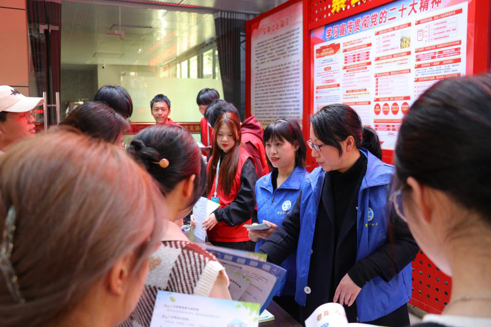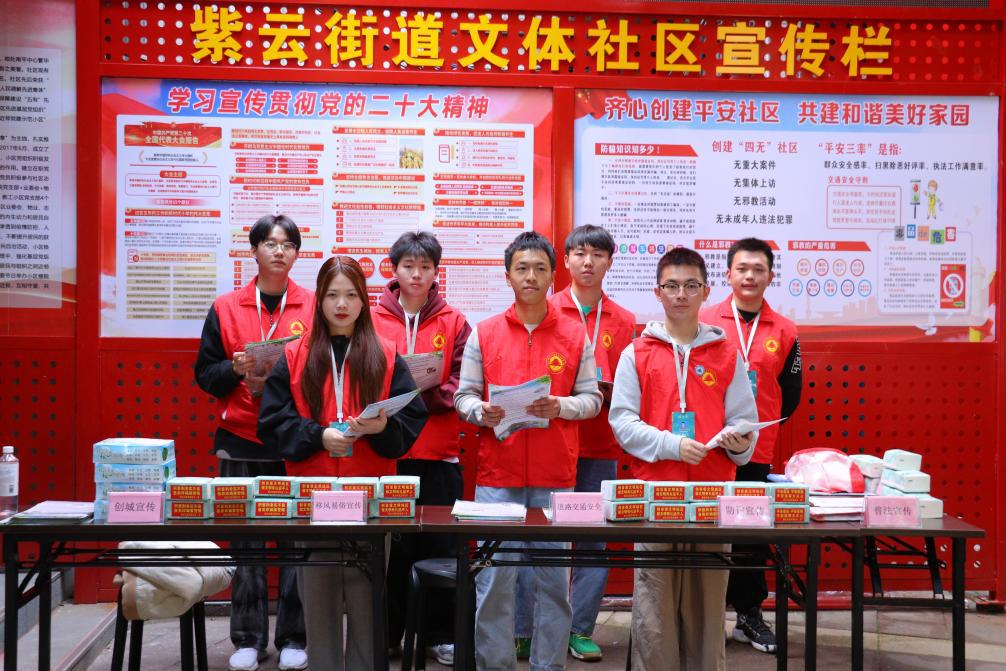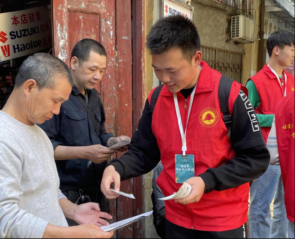 林学系志愿者和社区工作人员向社区居民就禁毒、交通安全、防诈骗方面知识进行宣传,共创美丽延平。