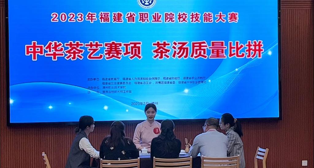 据悉,此次赛项历时4天,全省25所代表队的47支队伍齐聚一堂,以茶会友,同台技艺。赛项共设置了规定茶艺、自创茶艺、茶汤质量比拼、茶艺理论知识四个竞赛环节,综合考查高职院校学生识茶能力,泡茶能力,说茶能力,及茶艺编创与展示能力,从而促进学生具备精益求精工匠精神,提升专业素养及创新思维能力。