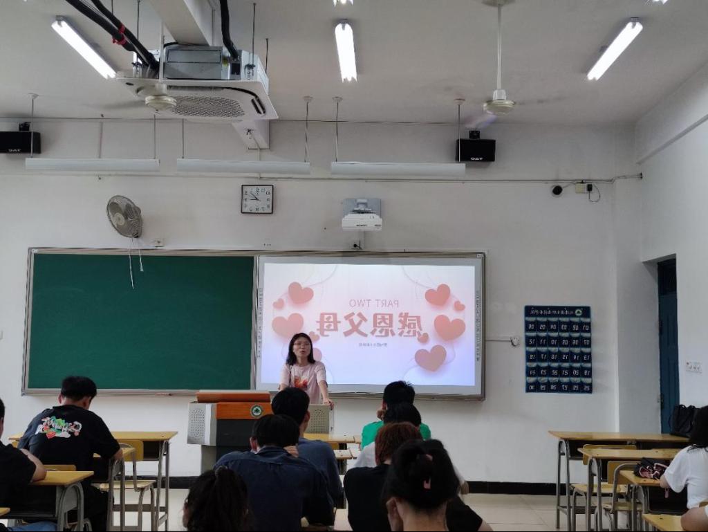 陈瑞玮老师在各班级开展形式多样的班会课,通过观看感恩视频、分享感恩故事、浅谈个人想法等内容,向同学们传递感恩家人的美好风尚,辅导员引导同学们将这种感恩延伸到感恩国家、感恩教师、感恩朋友,让学生对践行感恩有了更深刻的认识。