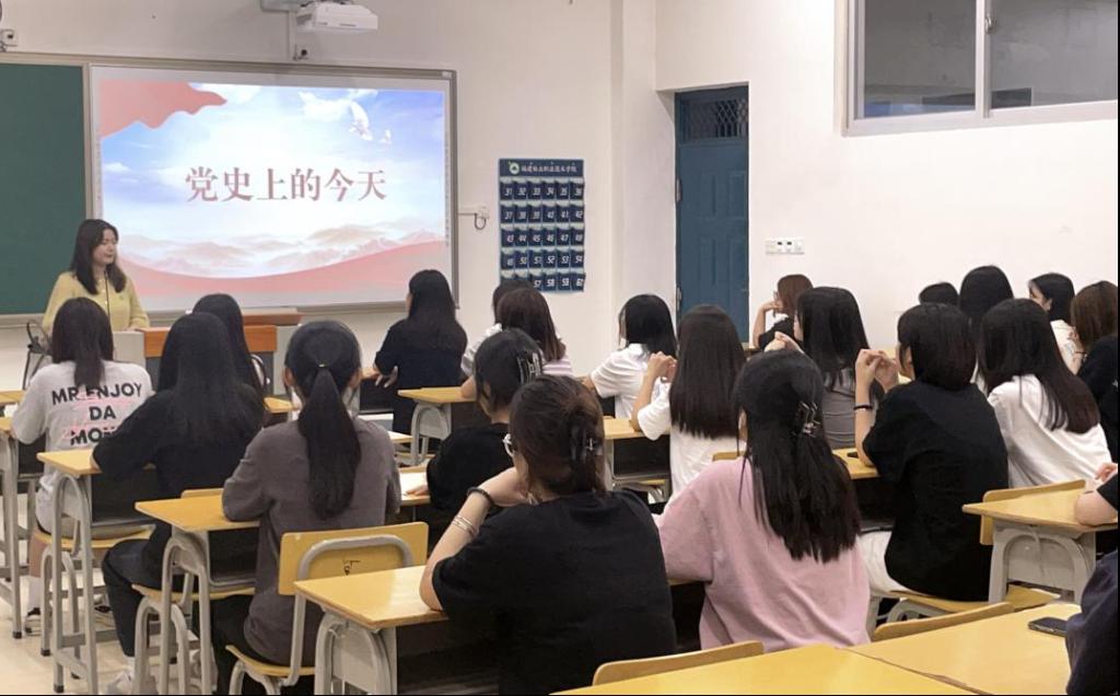 吴佳颖老师以“党史上的今天”为主题,带领旅游管理2204班的全体学生共同回顾了历史上6月的红色纪念日,号召大家要珍惜来之不易的幸福生活,感党恩、听党话、跟党走,常怀感恩之心,感恩时代、感恩国家、感恩人民、感恩组织,做到知恩图报、感恩奋进。