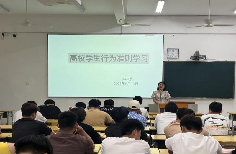 为全面贯彻党的教育方针,加强学生思想政治教育工作,引导学生坚定理想信念,形成良好的道德品质,养成文明行为习惯,林学系于2023年6月13日下午在教学楼305组织同学们学习《高等学校学生行为准则》。