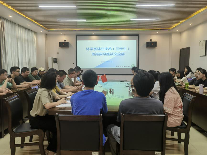 为深入学习贯彻习近平新时代中国特色社会主义思想,推动主题教育走深走实,切实做好林学系顶岗实习的组织管理和指导工作,2023年7月5日下午,林学系召开林业技术(三定生)顶岗实习座谈交流会,学院党委委员、副院长李肇锋,林学系党总支书记傅成杰、团总支书记兼学生科科长马艳红、教务科科长俞群、顶岗实习指导老师以及2024届林业技术(三定生)全体学生参加会议,会议由教务科科长俞群主持。