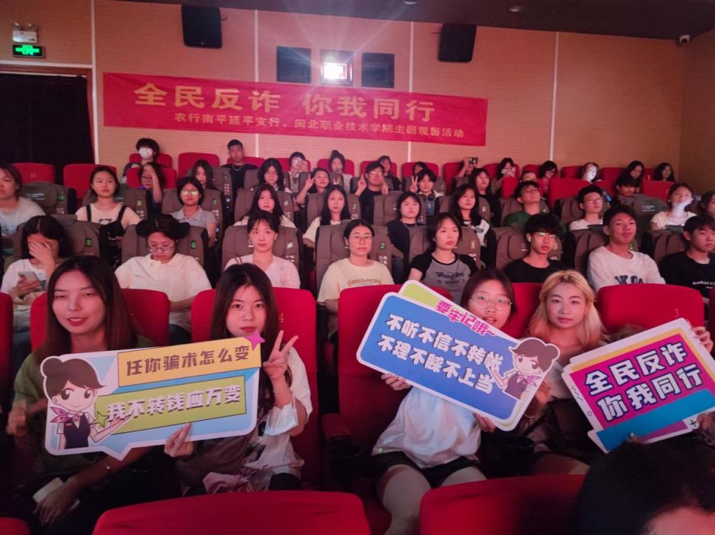 为深入贯彻落实全民反诈精准宣传的工作要求,进一步加强对学生防范电信网络诈骗的宣传教育,提升同学们识骗防骗技能,增强同学们自我保护能力,确保学生身心健康和财物安全,建设和谐平安校园。9月14日,福建林业职业技术学院联合延平区反诈联席办,举行《孤注一掷》观影活动,2023级新生及新生辅导员参与。
