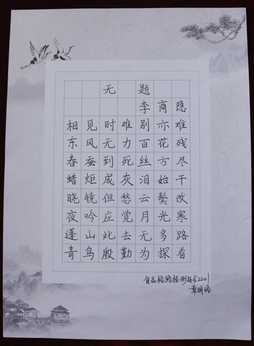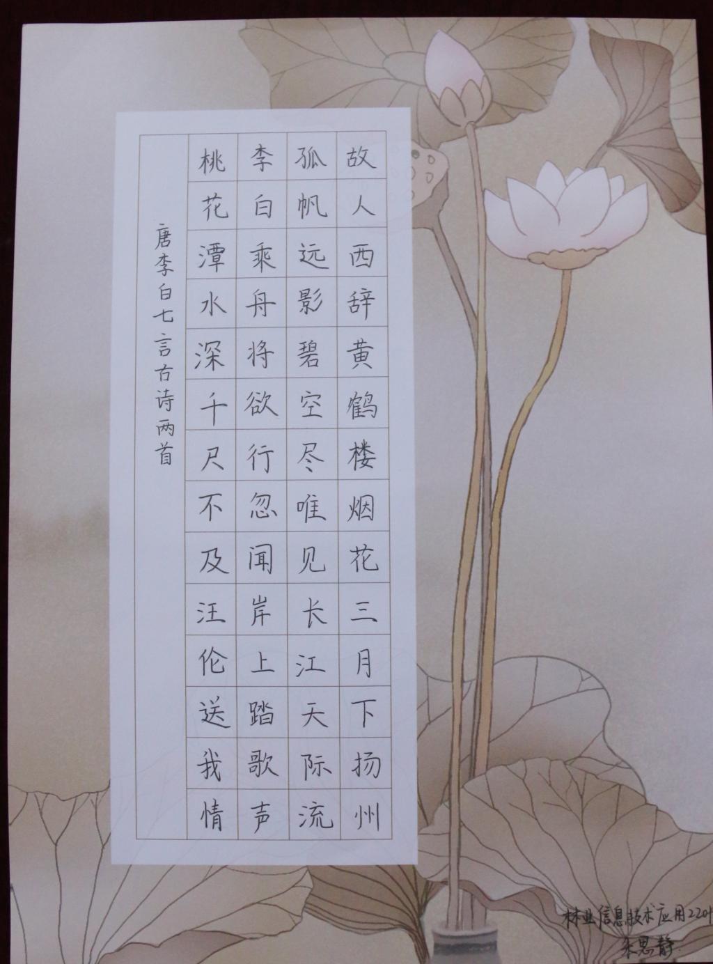 此次由林学系两委会举办的“翰墨书香”硬笔书法活动圆满结束。这次活动充分发扬中华民族优良传统,为广大书法爱好者提供一个交流切磋的平台,也进一步推进了校园文艺活动的蓬勃发展,让同学们在书法艺术中体味千年文化,为美好的大学生活描下绚烂一笔。