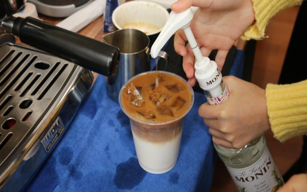 首先将牛奶加入杯子的八分满,再放入适量冰块。将咖啡豆研磨成咖啡粉,取粉称量后放入器具中进行萃取,萃取后的浓缩咖啡液与杯子中的牛奶进行融合。这样一杯香醇冰拿铁就制作成功了。同时也可以根据个人需求制作热拿铁和焦糖玛奇朵。