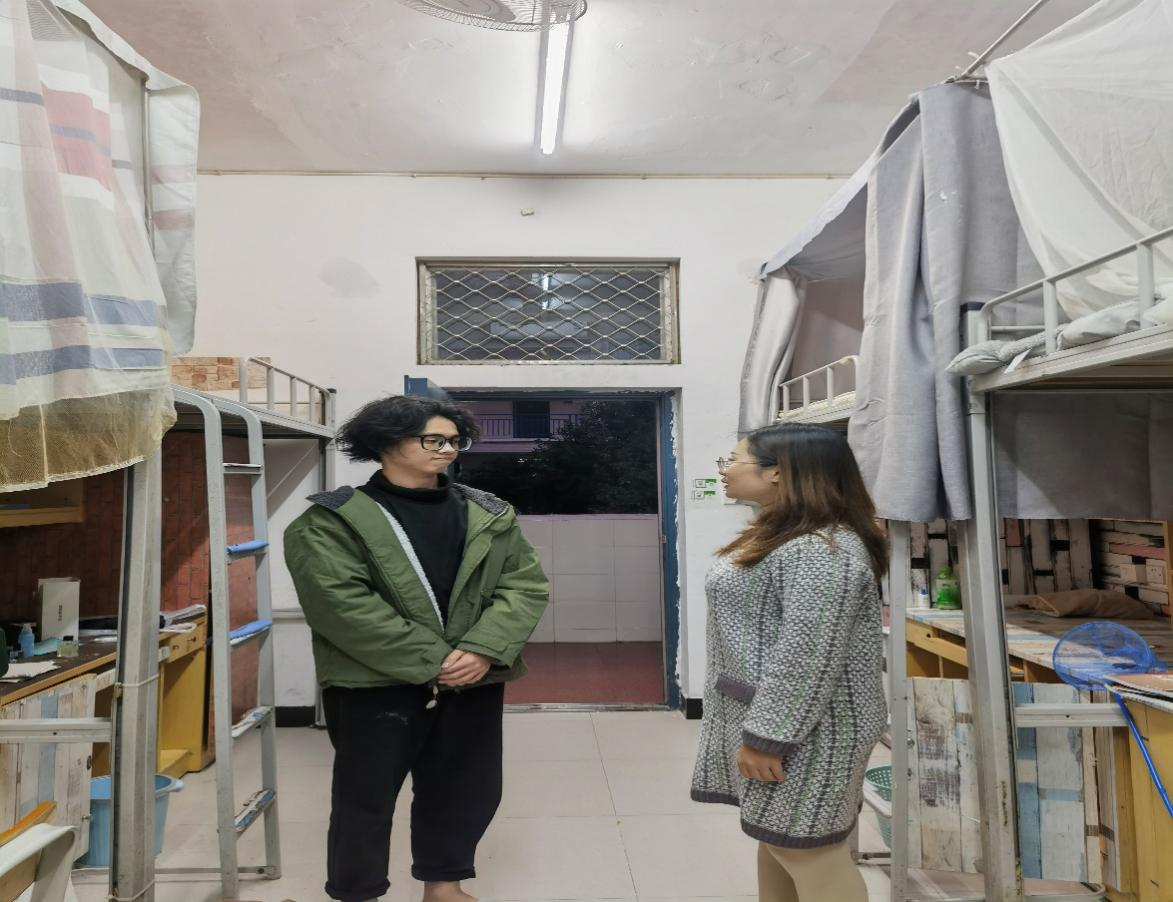 在走访过程中,傅成杰老师与同学们进行了亲切交流,了解同学们近期的学习、生活情况,提醒同学们冬季是火灾多发期,不要在宿舍存放易燃物品,不使用三无劣质插板,不使用高功率电器,不私拉电线,电器使用后及时断电,不向陌生人转账等。发现宿舍安全问题及时上报,保护人身财产安全。同时傅成杰老师强调了宿舍安全的重要性,提醒同学们要牢记宿舍用电安全,遵守校园规定,共同打造安全、整洁、的宿舍环境。
