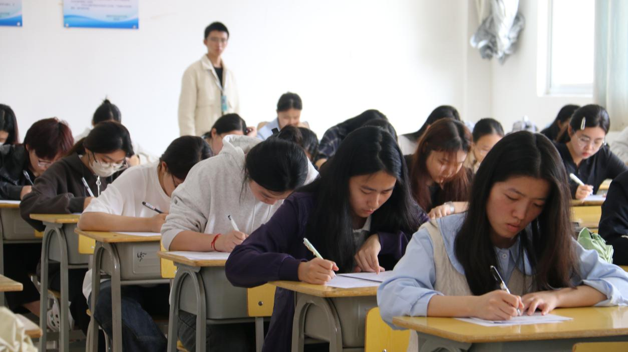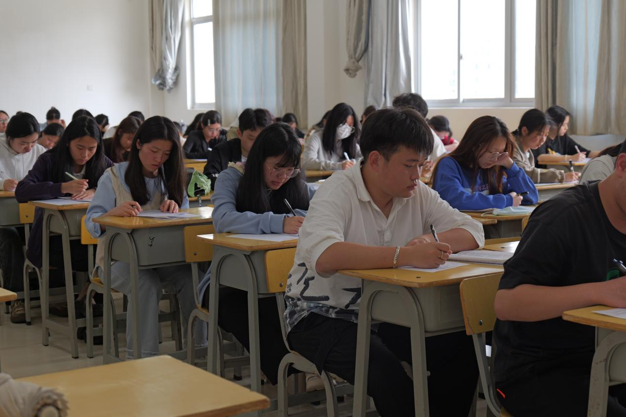 由主持人说完开场词并宣读比赛规则后,考生们便纷纷开始作答。此刻的考场内,仿佛成了一片知识的海洋,每个人都在其中畅游。没有紧张与慌乱,只有沉着与冷静。同学们用智慧的笔触,勾勒出一幅幅精美的画卷,展现出自己深厚的学识与才华。整个考场沉浸在一种紧张而有序的氛围中。
