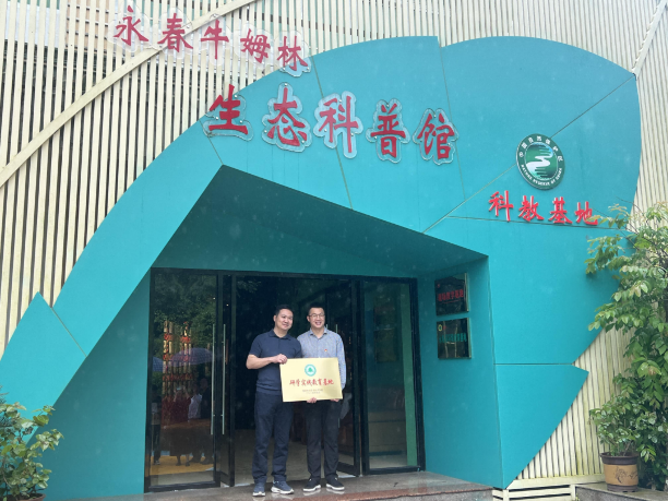 座堂会后,林学系党总支书记傅成杰为牛姆林景区颁授了“研学实践教育基地”与“森林生态旅游与康养教师实践基地”牌匾。