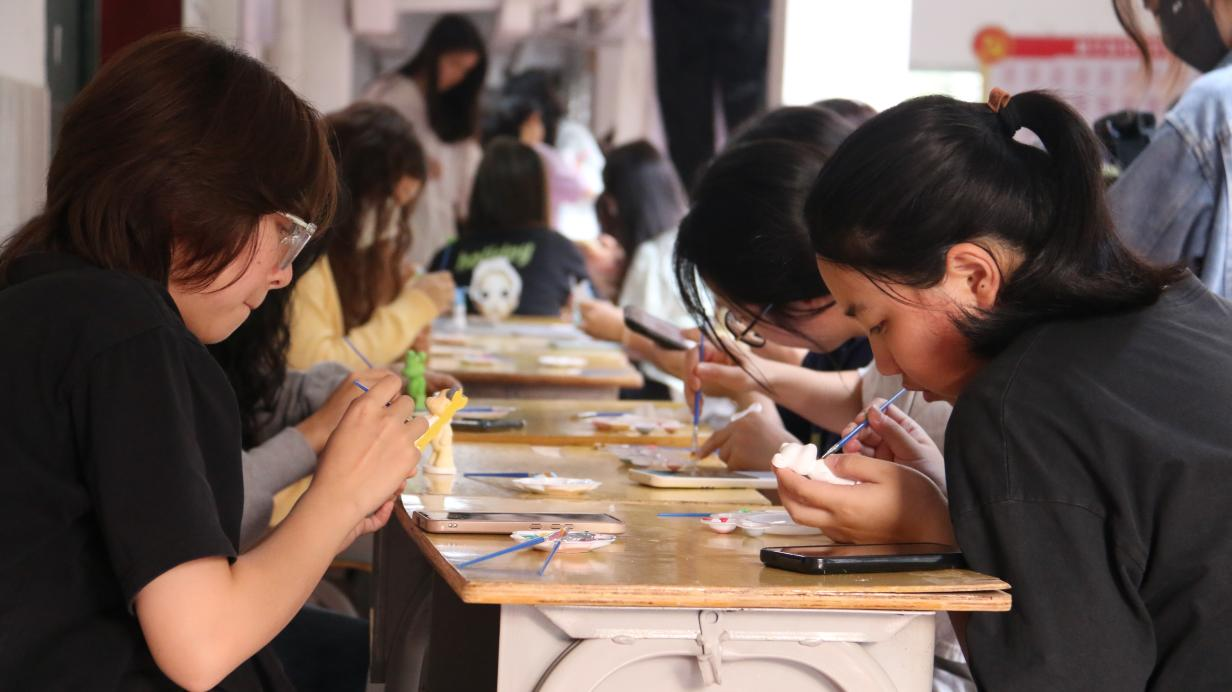 在活动过程中,同学们积极参与石膏绘画,他们发动脑筋、挥动着画笔,一个个白花花的石膏在同学们的笔下变得鲜活起来,仿佛有了生命。