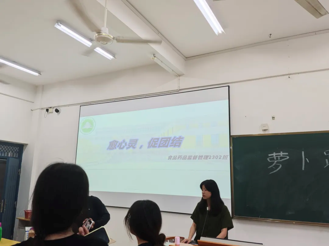 班级活动是建设和发展班集体的黏合剂,是激发学生内驱力的动力源泉,是激励学生全面发展的最好途径。为了打造团结向上、积极温暖的班级氛围,丰富班级活动,增强班级凝聚力,林学系2023级食品药品监督管理2302班学子,于2024年4月14日在教学楼605,以“愈心灵,促团结”为主题开展了班级团建活动。
