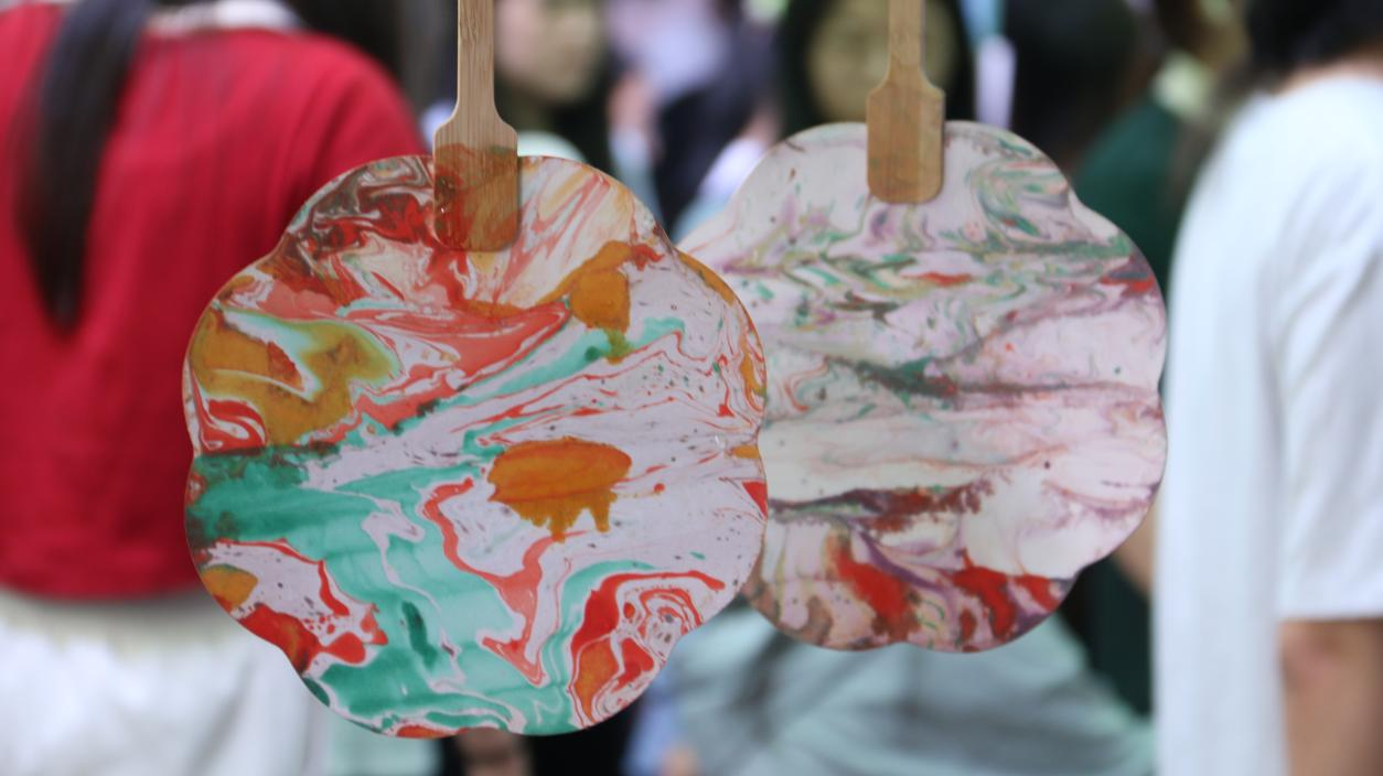 活动最后,通关两个即以上游戏的同学们,都领到并制作制作完成属于自己独一无二的漆扇。活动中见证了每一位参与者的制作成果,制作过程的每一步都充满了挑战和收获。当手中的漆扇逐渐呈现出美丽的图案和色彩时,大家都不禁为之惊叹和欢呼。