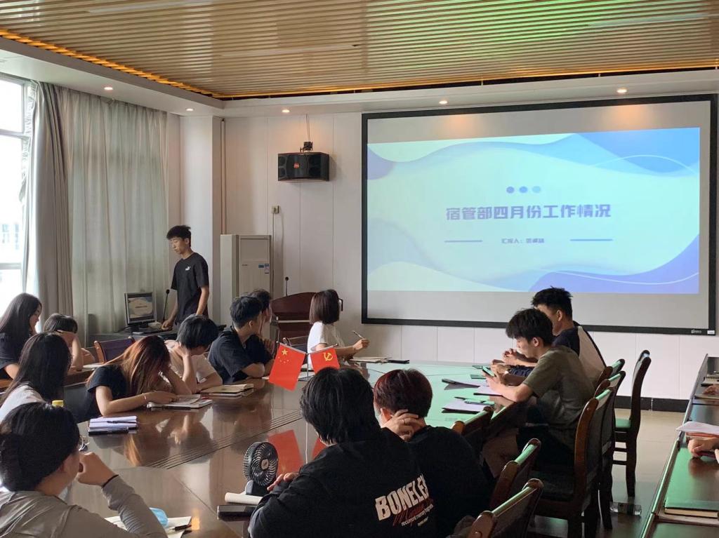 汇报结束后,马艳红老师对四月份开展的植物拓染、清明节祭扫、消防应急演练、学生社区文化艺术节“才艺大赛”、漆扇非遗、团日活动等的工作给予了充分的肯定,同时也对存在的不足进行了批评指正,并鼓励学生干部在今后勇于挑战开展更多大家喜闻乐见,形式多样的各种活动。