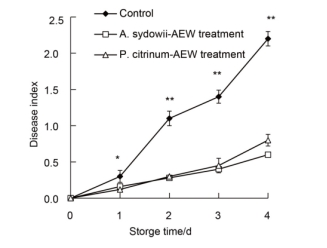 Fig. 6 Effect of AEW (EC50 ) on tangelo fruits disease index.