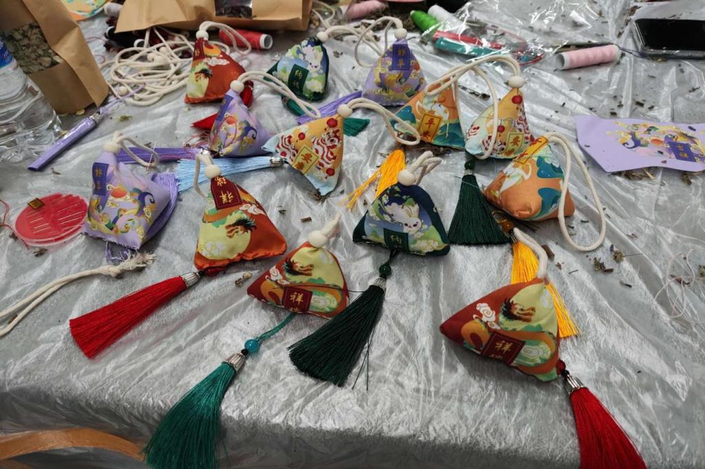 经过一个小时的努力,同学们香包终于制作完成。纷纷展示自己的作品,互相欣赏、交流。有的香包造型别致、色彩鲜艳;有的则注重细节、手工精细。每一个香包都承载着参与者的心血和创意,也体现了参与者对传统文化的热爱和传承。