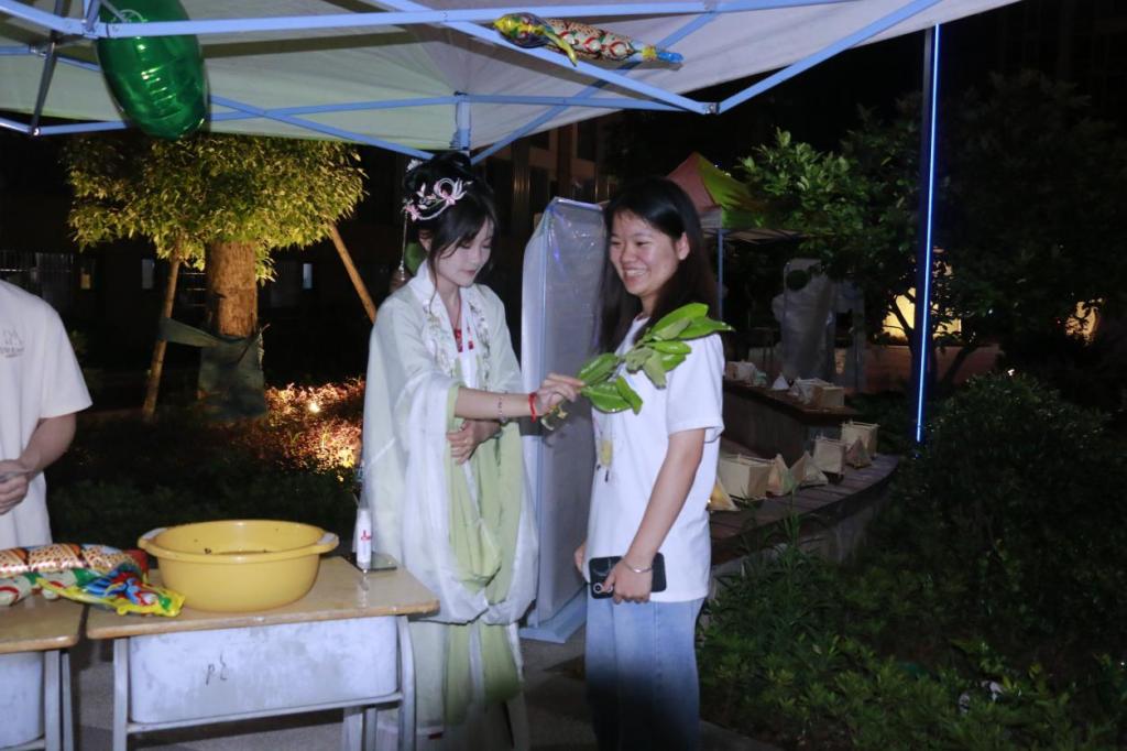本次活动分为点朱砂、沐兰汤、投壶、猜灯谜、戴五彩绳、制香包、放河灯六个体验传统民俗的活动,传统乐趣不断,共度欢乐节日!接下来,请同学们一起来体验这份传统与乐趣的结合: