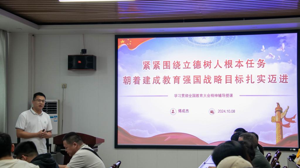 为深入学习贯彻习近平总书记在全国教育大会上的重要讲话精神,弘扬教育家精神,大力培养大国工匠、能工巧匠、高技能人才,10月8日下午,林学系党总支书记傅成杰在林学楼四楼会议室开展学习贯彻全国教育大会精神专题宣讲,系部全体教师参与学习。