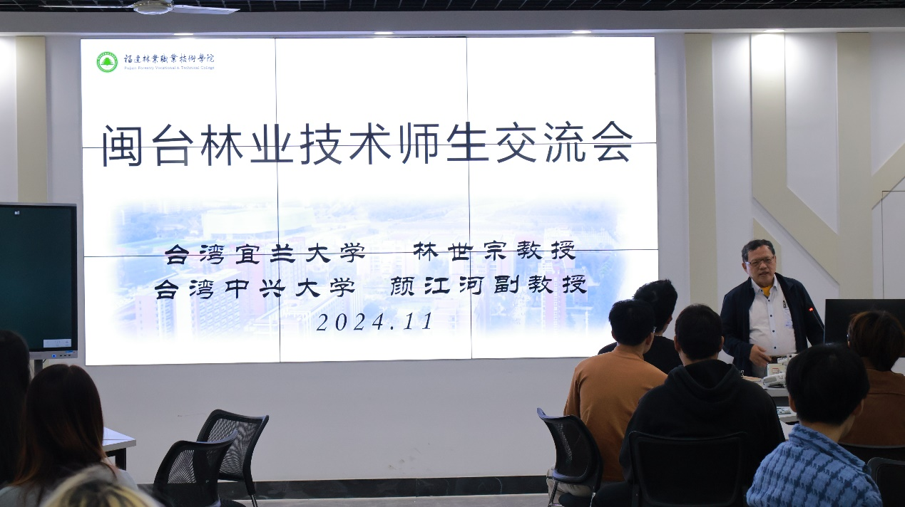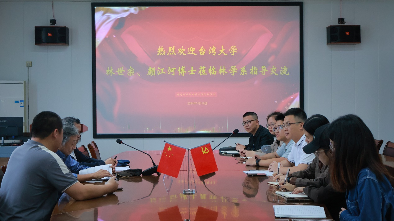 为加强两岸林业教育与科研的互动,共同探索林业绿色发展新路径。2024年11月18日,来自台湾大学的林世宗博士和颜江河博士受邀访问福建林业职业技术学院林学系,与林学系的师生们进行了交流学习。