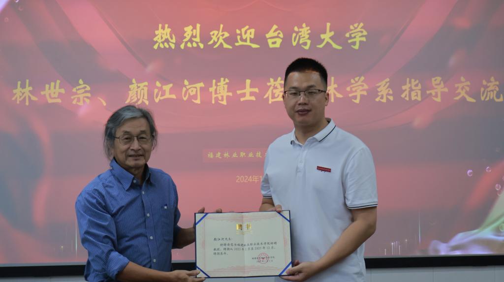 随后,林学系党总支书记傅成杰为林世宗博士和颜江河博士颁发聘书。