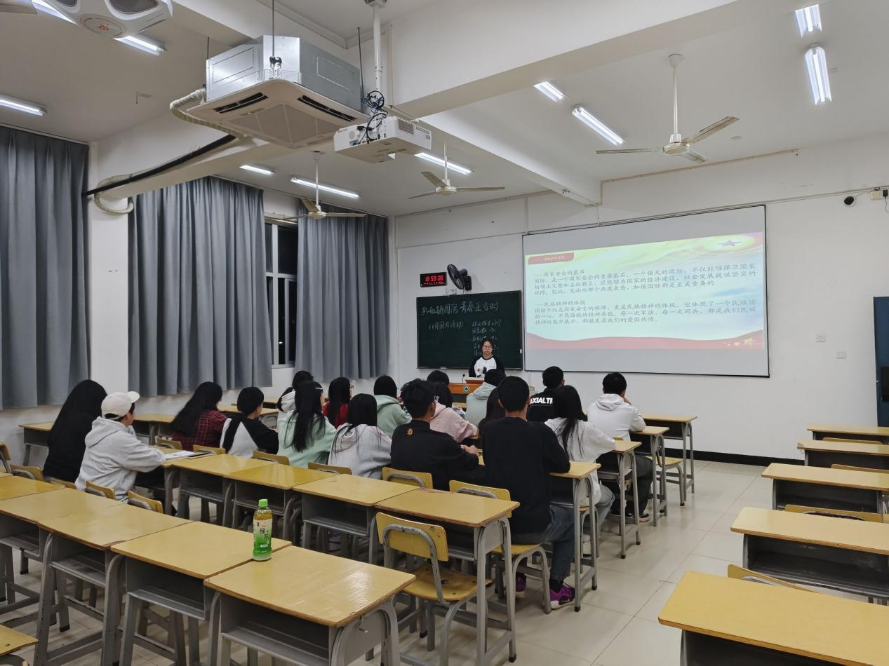 在此次活动中组织团员学习国防安全,学习内容主要有国防的重要性、青春与国防的关系、如何为国防贡献青春力量、国防事业中的青年榜样,广大青年都是国家安全的重要守护者,我们的每一份力量,都是国家安全的重要支撑。让我们以满腔的热情,投身国防,用我们的青春和热血,铸就国家的安全和繁荣。