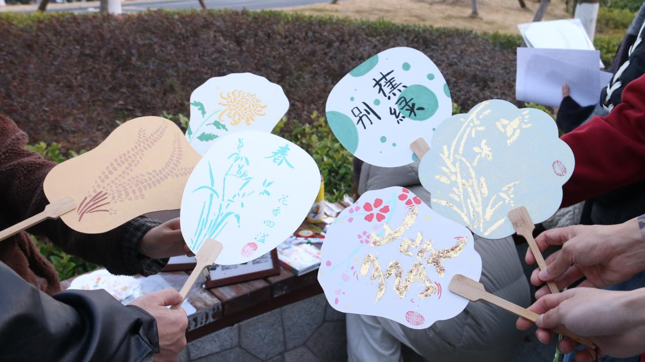 与此同时,DIY茶扇环节也吸引了众多同学的关注。同学们在扇面上自由发挥,将茶文化的元素与现代创意相结合,绘制出了一幅幅独具特色的茶扇作品。这些作品不仅展现了同学们的创造力和艺术才华,更让传统茶扇焕发出了新的生机与活力。以下为优秀作品展示。