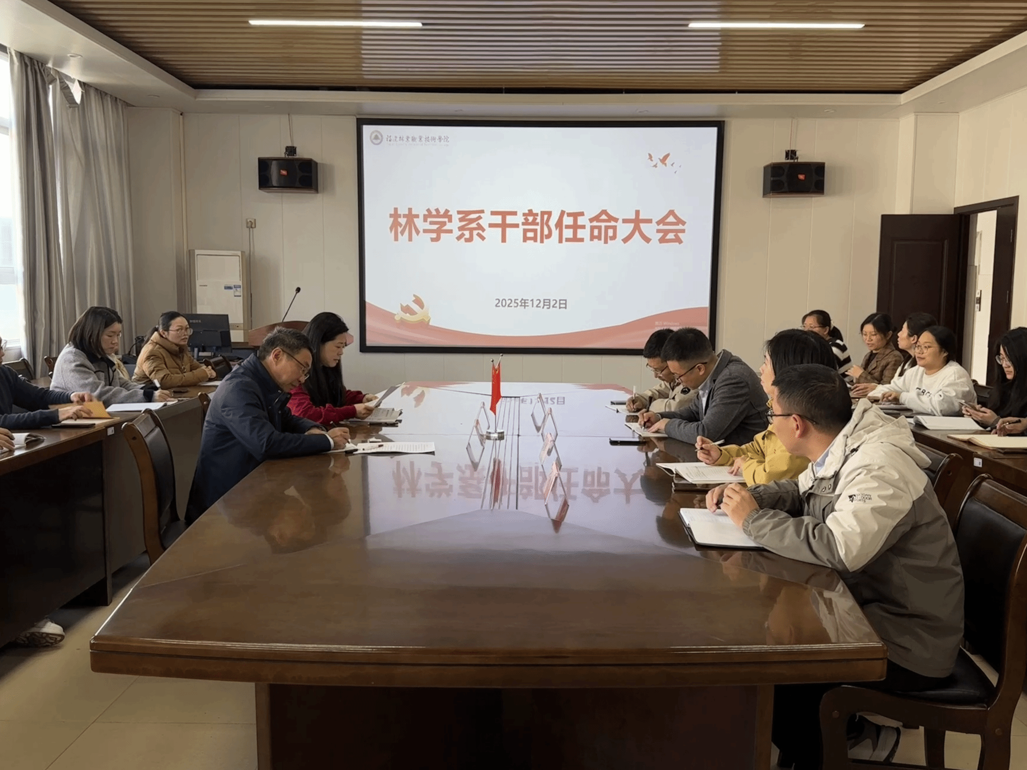 12月2日上午,林学系在林学楼四楼会议室召开干部任命大会,宣布干部任命决定。学院党委委员、副院长李肇锋,组织部(统战部)部长李霞,林学系党政领导班子、全体行政坐班人员参加会议,会议由林学系党总支书记傅成杰主持。