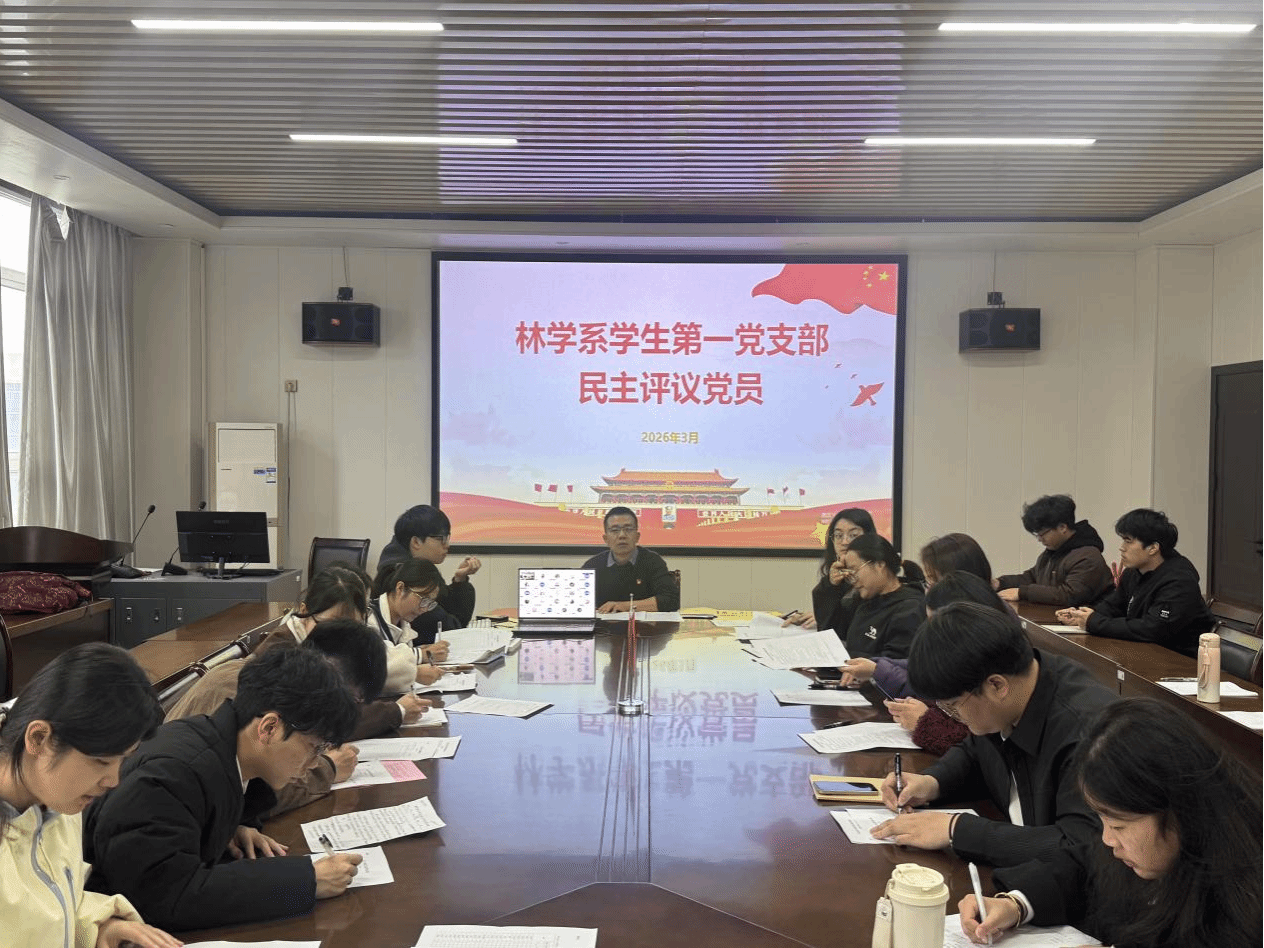 为深入学习贯彻党的二十大精神,党的二十届四中全会精神,坚持不懈用习近平新时代中国特色社会主义思想凝心铸魂,同时结合传承弘扬习近平总书记在福建工作期间的重要理念和重大实践,为全面深化改革、推进中国式现代化提供坚强纪律保证,2026年3月3日上午,林学系学生第一党支部在林学系会议室召开2025年度组织生活会,并开展民主评议党员,本次会议由支部书记叶知勇老师主持,支部全体师生党员参会。