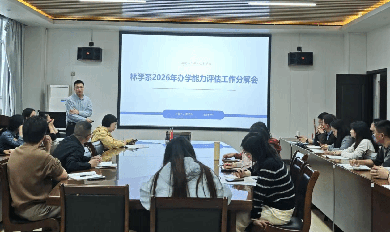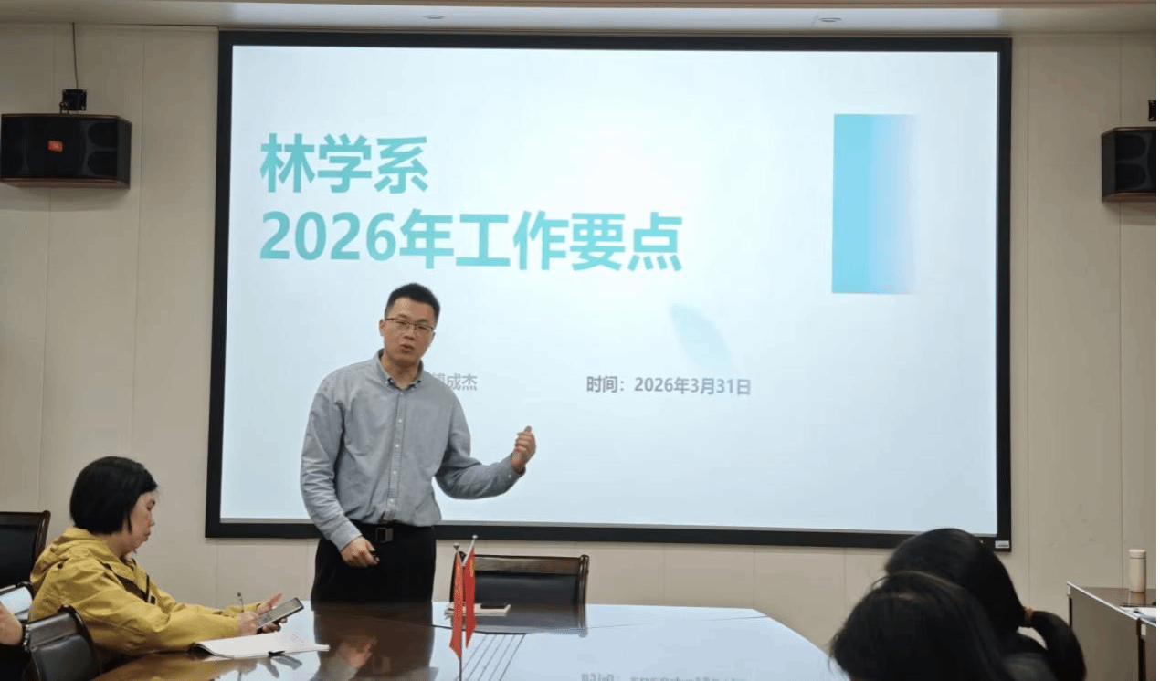 3月31日,我系召开2026年工作要点暨办学能力评估分解会,全面谋划年度发展蓝图,林学系全体专兼职教师参会,会议由林学系主任傅成杰主持。
