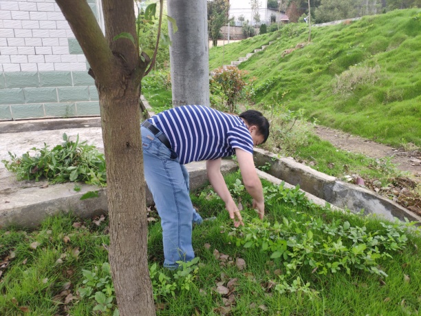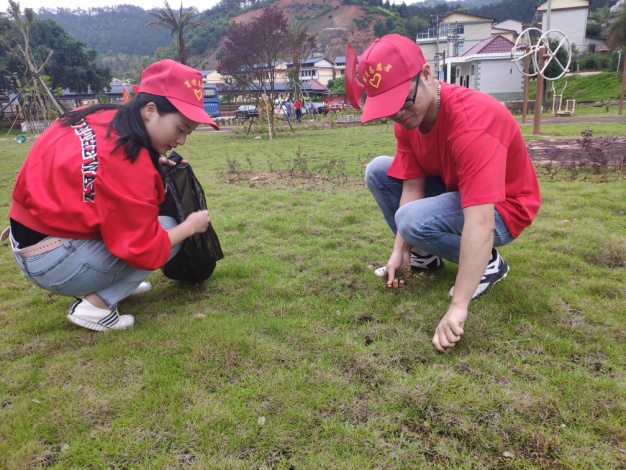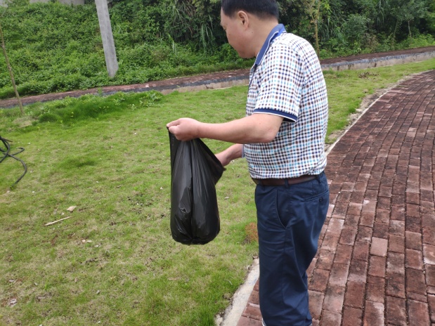 在经过简单的区域分工之后,同学们便走到草丛中开始了“拔草护绿”, 志愿者专注的盯着草地,搜寻着杂草,不时的将拔起来的杂草一袋袋倒入路边的垃圾箱进行统一处理,夏道镇长与镇书记看到后也情不自禁的加入进来。