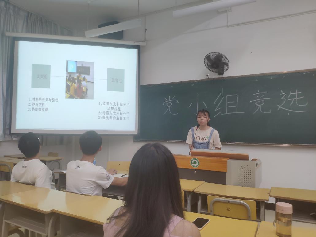 2019年9月19日星期四,林学系第一党支部“党小组成员竞选大会”在实训四307举行,参加此次竞选的有罗勇老师以及党小组的候选人。