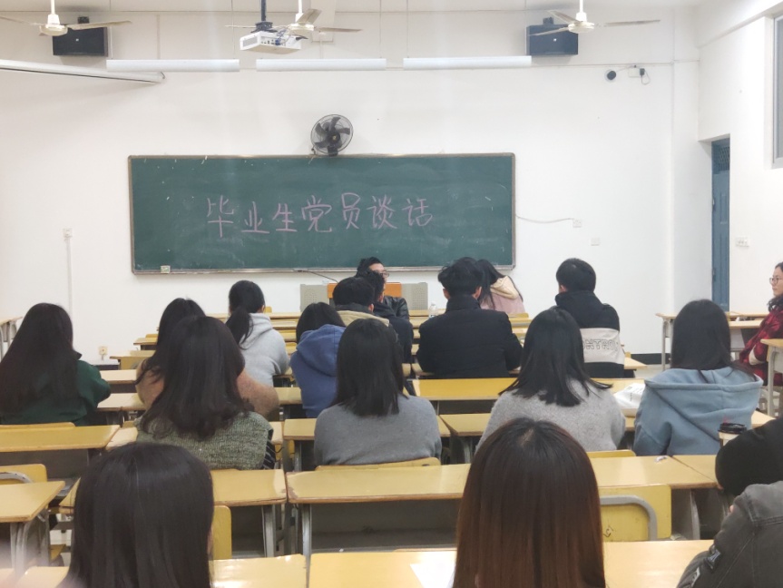 校园毕业季,离别伤感时。为了进一步发挥样板支部的作用,加强创新支部的建设,林学系学生第一党支部组织召开“毕业生党员谈话”,时间:2019年11月28日晚8点;地点:实训四407。出席本次会议的有林学系第一党支部书记罗勇老师、马艳红老师以及林学系第一党支部毕业生党员。