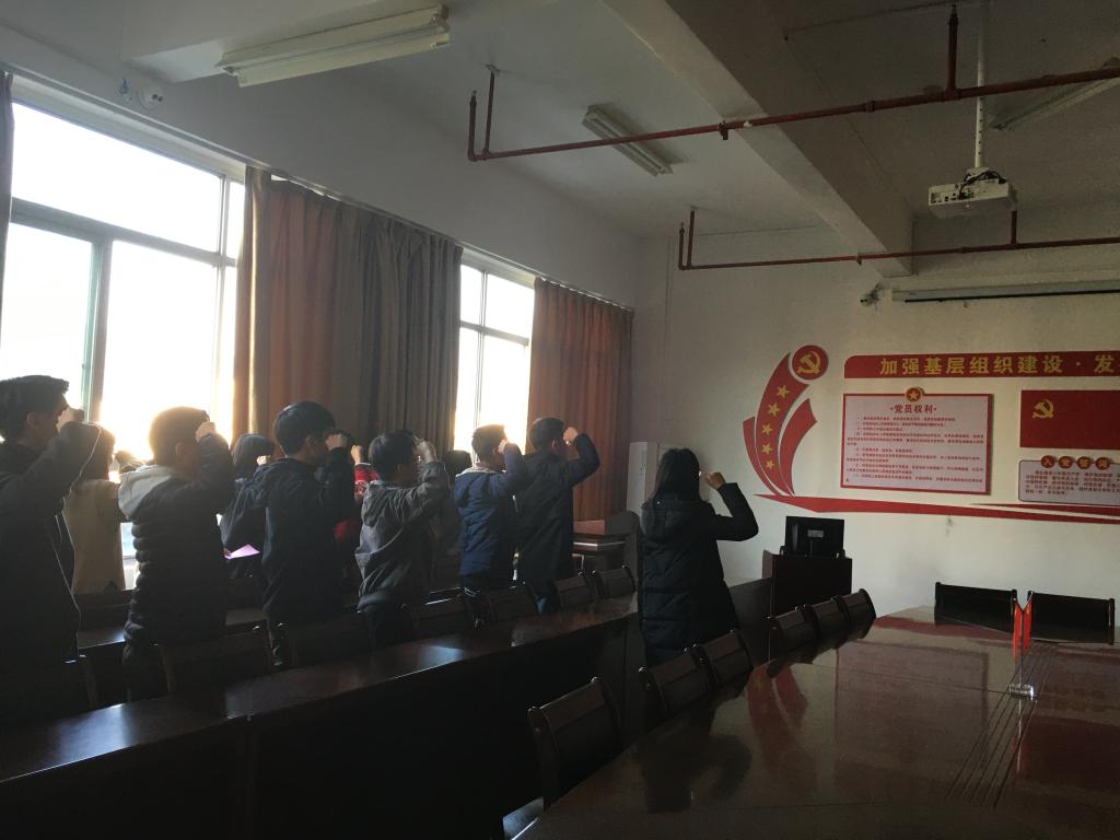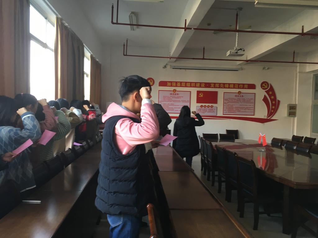 2019年12月13日下午,45期预备党员在林学系会议室对着党旗进行了庄严的宣誓仪式。本次宣誓仪式参加人员有林学系第一党支部书记罗勇、马艳红老师。以及本次转预备党员的18位同学。
