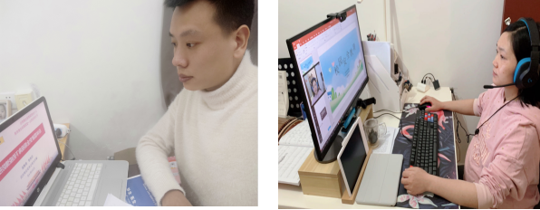 支部教师党员学习(从左到右为:陈明峰、吴慧敏)