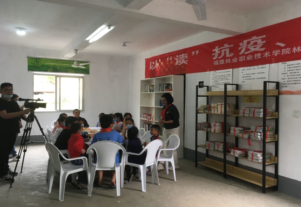 仪式当天,林学系还向夏道镇洋坑村捐赠儿童读物约1000册,以表达对留守儿童的关爱。学院心理咨询中心陈红英主任为村部十几名儿童开好“开学第一课”,为孩子们开展心理辅导,以利于其在疫情期间调整自己、保持心理健康,迎接即将开始的校园生活。