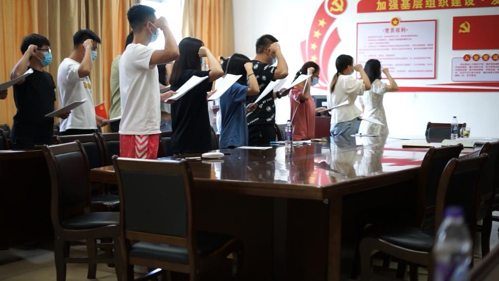 2020年6月21日上午,林学系第一党支部在实训一四楼会议室进行了党员入党的宣誓仪式。学生预备党员在支部党员马艳红的带领下进行了庄严的入党宣誓仪式。