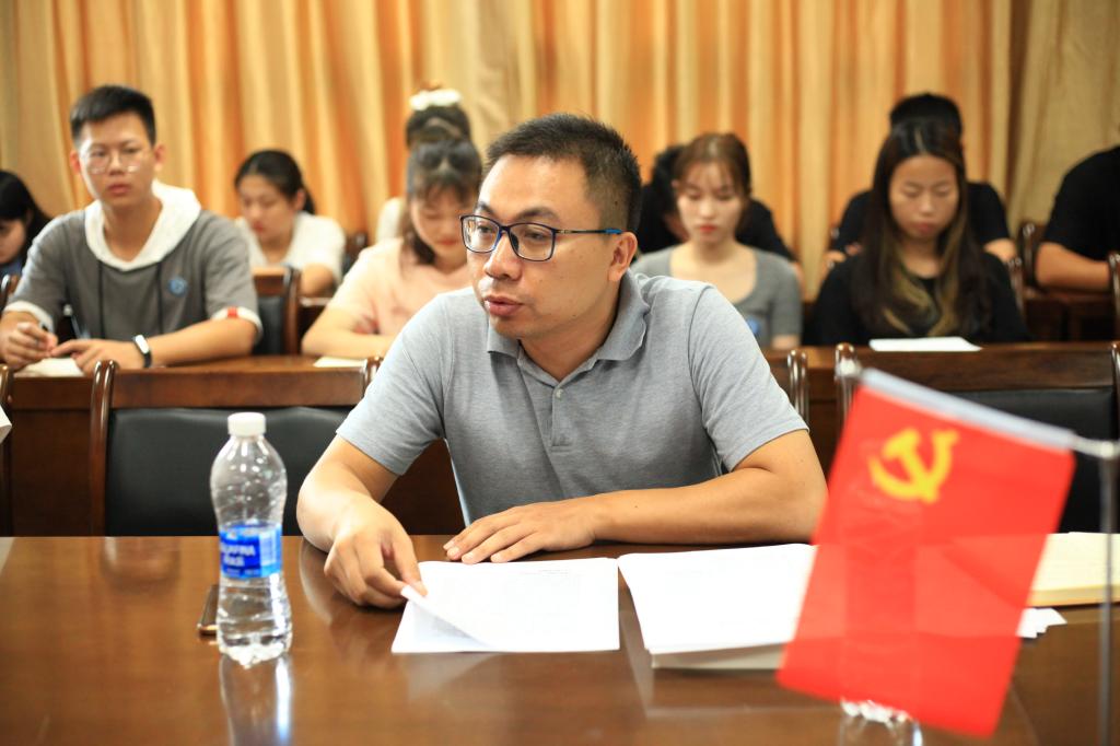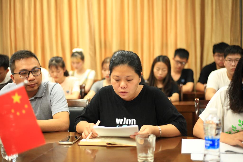 学生第一党支部教师丁灵妍领学《习近平在福州》中《“一餐一饭系心间,一举一动为人民”》与“习近平作出重要指示强调:坚决制止餐饮浪费行为切实培养节约习惯,在全社会营造浪费可耻节约为荣的氛围”的重要指示精神。