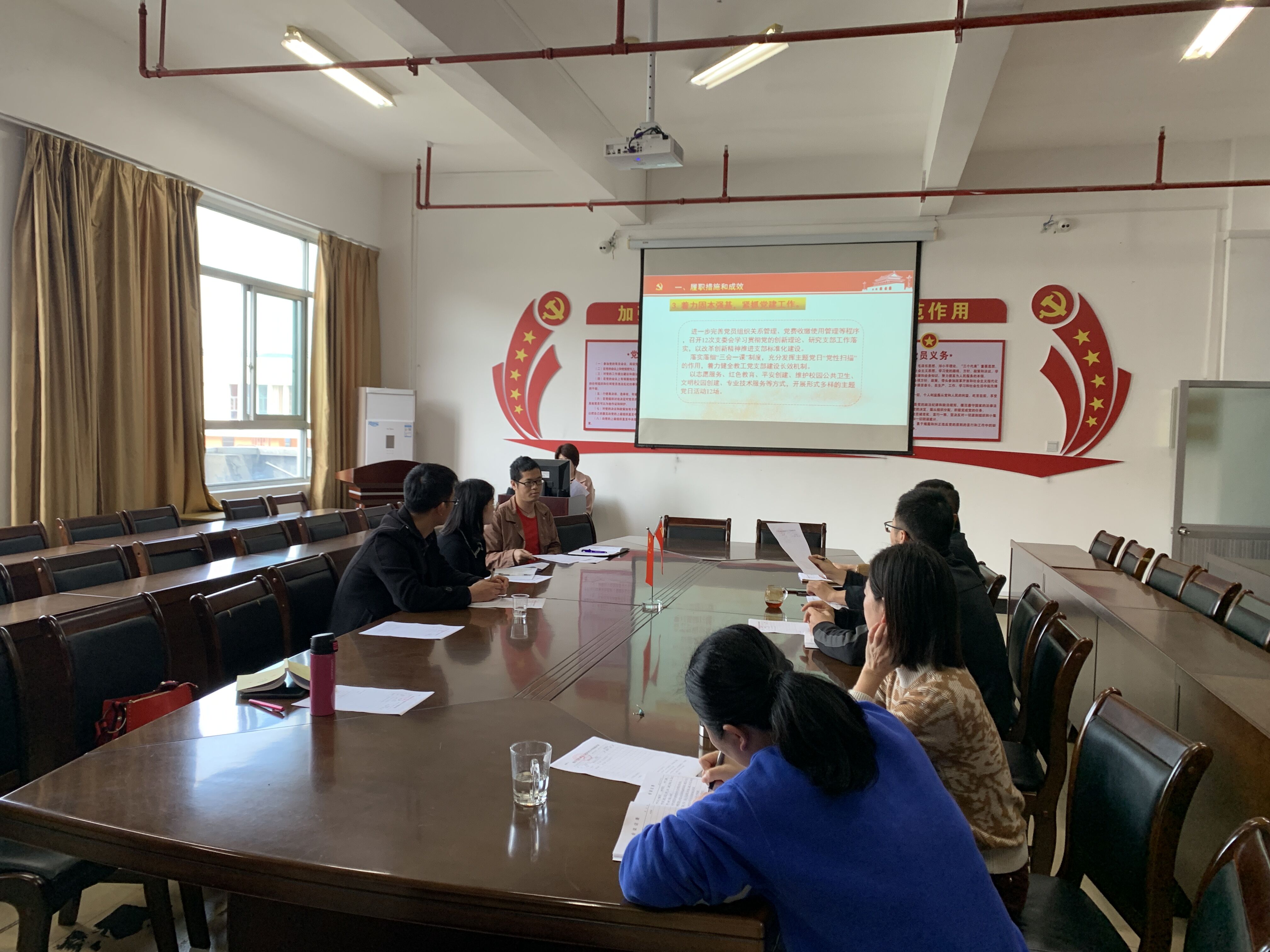 林学系党总支书记徐洪主持会议,其指出,今年是建党100周年,党建工作引领中国特色社会主义事业的发展,务必重视。随后,教师党支部书记纪颖、学生第一党支部书记罗勇、学生第二党支部书记樊寿娜先后上台做述职汇报,结合自己党支部近一年以来的工作内容、工作特色、存在问题和今后该努力的方向做总结阐述。最后,由在座的党员和群众代表对三位党支部书记进行评议。