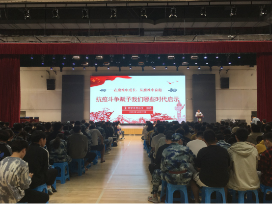 2021年10月19日星期二晚七点,徐洪书记在体育馆面向林学系大一新生开展“抗击疫情赋予我们哪些时代启示”的党课。向大一新生详细讲述抗击疫情赋予我们的启示。