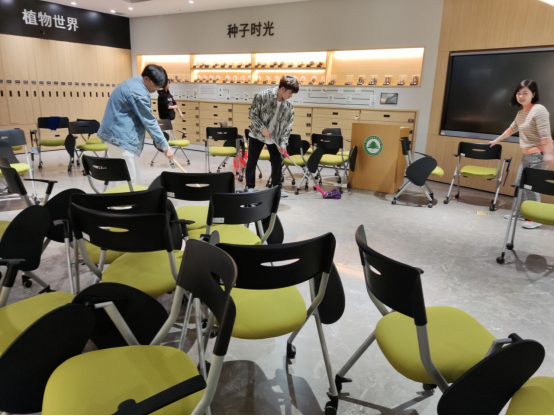 本次大扫除的重点是对生态馆的周边死角的清扫工作。劳动伊始,胡凤玉老师将同学们分组具体分配任务。大家分工合作,干劲十足。