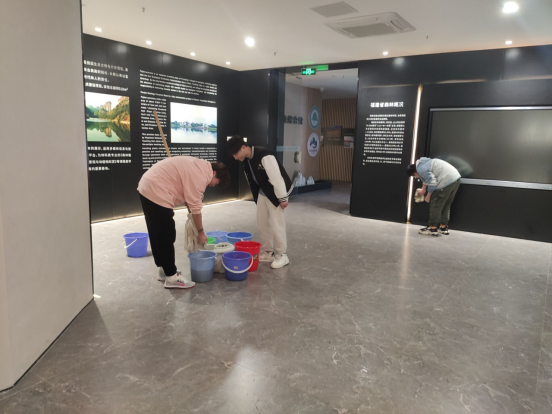 在清扫过程中,党支部成员有的用擦布把玻璃柜、展示牌和桌子擦的干干净净;有的用扫帚清扫地面上的灰屑和之前遗落的玻璃碎;有的用拖把把本原先有些陈旧的地面擦的焕然一新。同学们始终保持热情洋溢,体现了学生党员和积极分子阳光向上、精神饱满的良好状态,充分展示了不怕脏、不怕苦、不怕累,能挑重担的良好精神风貌。大家热情高涨,以劳动为荣,积极为建设文明校园贡献一份微博的力量。