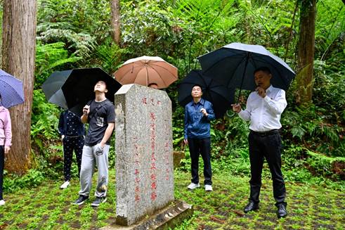 感受完革命先烈的英雄事迹,党员同志们还继续考察了独具特色的杉木丰产林和杉木王。1919年春,溪后村的三位青年农民用插条的方法栽植,初植密度为240株/亩。上世纪五十年代初,经福建省林业厅测定:该处丰产林平均树高29.2米,平均胸径25.6厘米,每亩蓄积量78.9立方米,居全国之首。现有保存株数2876株,亩蓄积量70.57立方米。