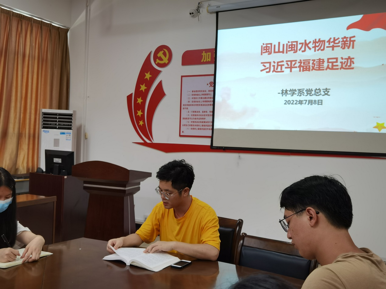 7月8日上午,林学系党总支组织召开“闽山闽水物华新,习近平福建足迹”专题学习,参加会议有林学系专职组织员罗勇、学生党支部书记樊寿娜及学生党员。