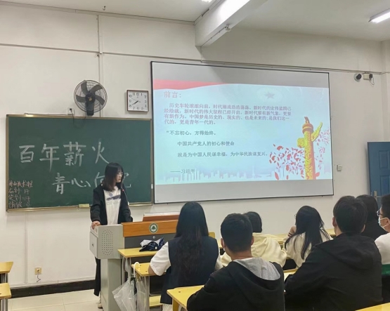 活动由各班团支书主持,通过PPT展示讲述了中国共产党在民族存亡之际应时而生,百年薪火,让世界见证中国青年的力量。