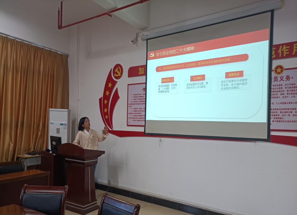 党课上,樊寿娜老师简要阐述了学习宣传贯彻党的二十大精神的重大意义,并着重从“9个深刻领会”系统阐述了党的二十大精神的核心要义和丰富内涵。她在党课中谈到,要全面准确学习领会党的二十大精神,要在深刻领会党的二十大主题、深刻领会过去5年的工作和新时代10年的伟大变革、深刻领会开辟马克思主义中国化时代化新境界等“9个深刻领会”上下功夫。作为大学生党员,要充分认识到教育、科技、人才在全面建设社会主义现代化国家的基础性、战略性支撑作用,要在日常的学习、生活中积极实践创新,努力成长为德智体美劳全面发展的时代新人,为科技自立自强注入青春力量。同时,她还鼓励各党员和入党积极分子,伟大的新征程已经开始,奋进正当时。作为青年一代,应当树立远大的理想和抱负,将实现个人价值的目标与时代奋进的目标结合起来,在不懈奋斗中实现自己的人生价值。