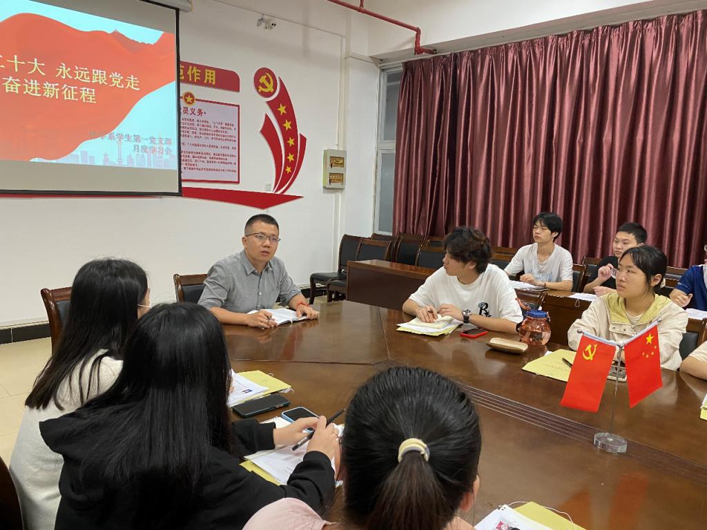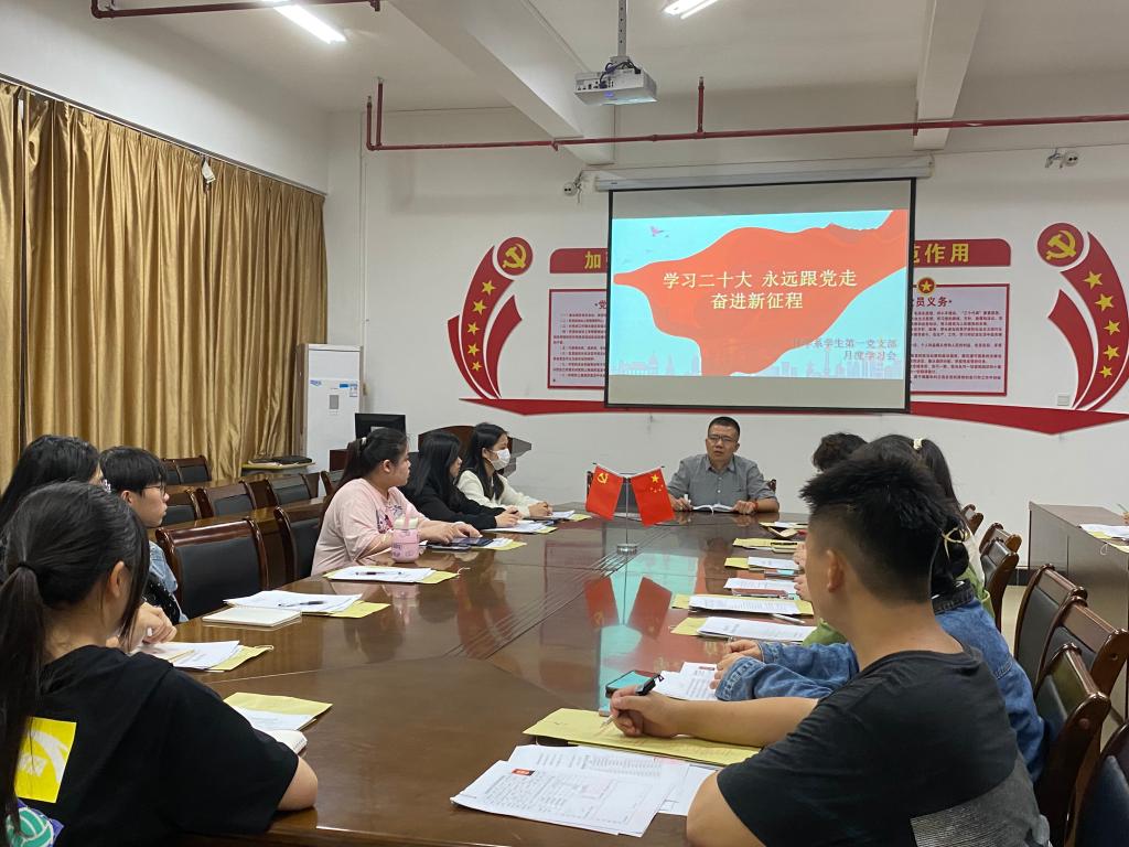 2022年11月29日下午林学系学生第一党支部在林学楼四楼会议室开展“学习二十大 永远跟党走 奋进新征程”党员学习教育专题会,会议由支部书记叶知勇老师主持。