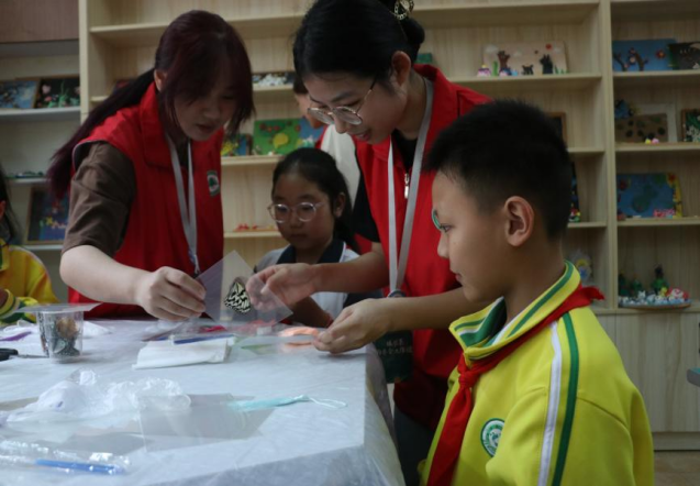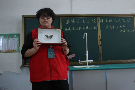 活动中,支部党员和入党积极分子们充分利用自身专业特长带领小朋友们识别校园植物、认识昆虫标本、制作叶脉书签等,将森林文化带入校园,使小朋友们更加了解和热爱大自然。此次昆虫识别,主要向小朋友们介绍了“蝴蝶与蛾的区别”,通过形状各异的蝴蝶翅膀和各种形态的蝴蝶标本的展示和讲解,小朋友们争先恐后地问问题,对大自然充满了好奇和向往,活动现场的氛围十分活跃。在叶脉书签的制作环节,小朋友们积极投入,利用稚嫩的小手创造了一幅幅独具创意的作品,让落叶重新“焕发”了生机。