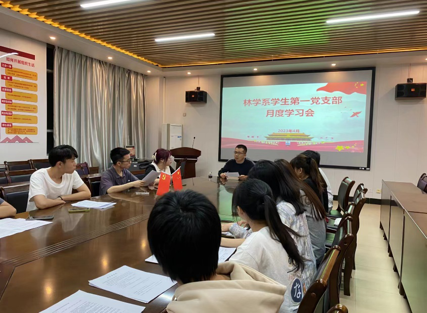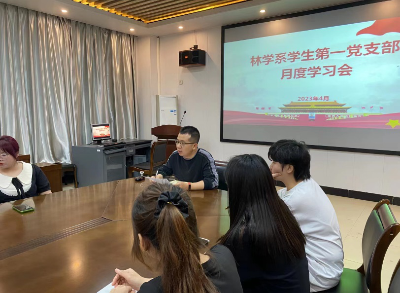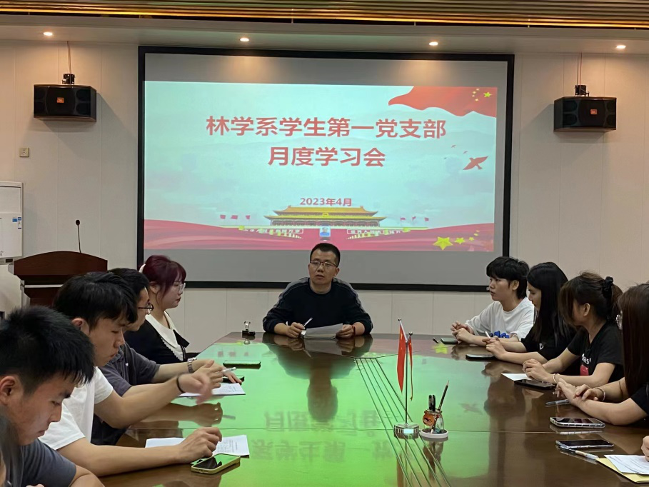 2023年4月17日,林学系学生第一党支部在林学楼四楼会议室召开会议,深入学习宣传贯彻习近平新时代中国特色社会主义思想,进一步推动党的二十大精神入脑入心、走深走实。此次会议由党支部书记叶知勇老师主持,支部全体党员及部分积极分子参会。