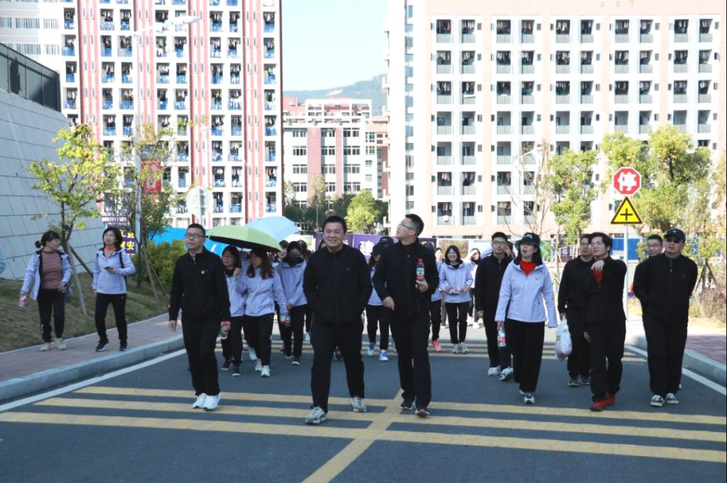 活动开始后,党员干部们健步如飞,大步流星,沿着江南校区步道,蓝天白云、阳光明媚,大家边走边交流,龙景山美景尽收眼底。活动开展的过程中氛围良好,让大家暂时从紧张的工作氛围中得到释放,使疲惫的心态在一定程度上得到宽慰。